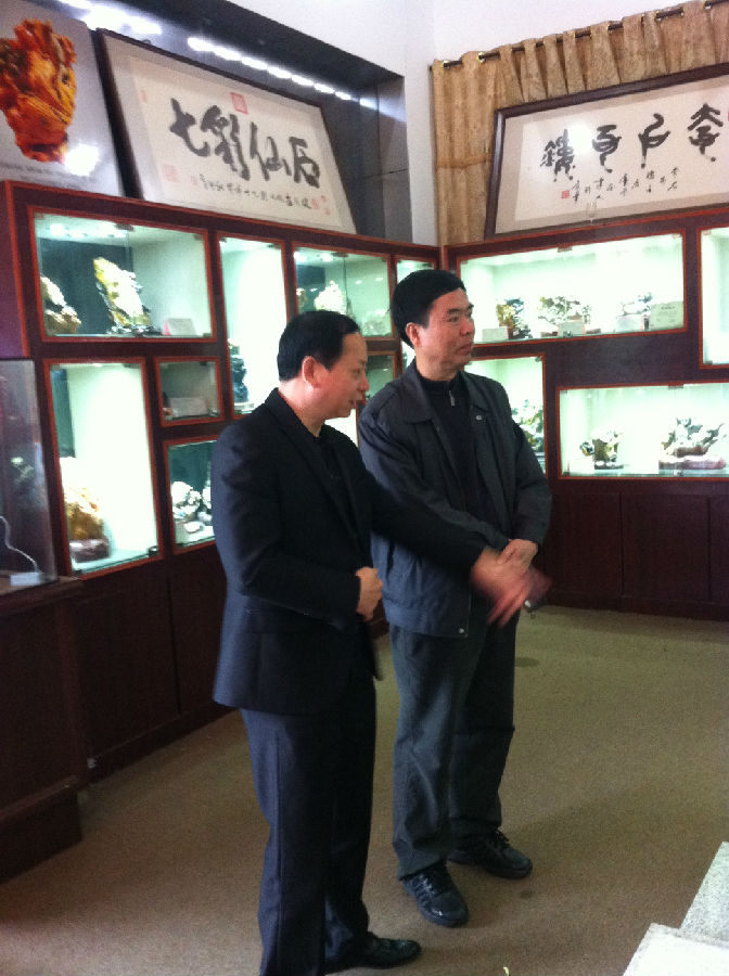 彭院长一行首先听取了方志舜先生关于仙游七彩石发展的现状和前景以及森艺仙石工艺有限公司情况介绍。随后,彭院长一行在方志舜先生陪同下参观仙游七彩石展厅和仙游国际石雕。双方还就科研、产学研用合作、人才培养等方面进行了深入交流和磋商,并在科研合作、人才培养等方面达成了广泛共识。